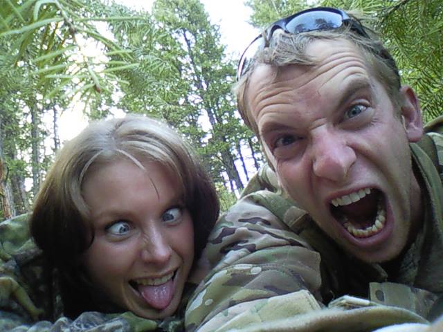 It was spring when I met the man I am proud to call my husband. Our first ” Date ” ( not sure we actually called it that ) was a trip out to feed and sit over a bear bait in Idaho. We spent the evening laughing and joking. He taught me about lighting a fire with my flint and steel and we just simply enjoyed the outdoors together. It is a favorite memory of mine. Here is a picture of us being ” Quiet ” at the bait site.