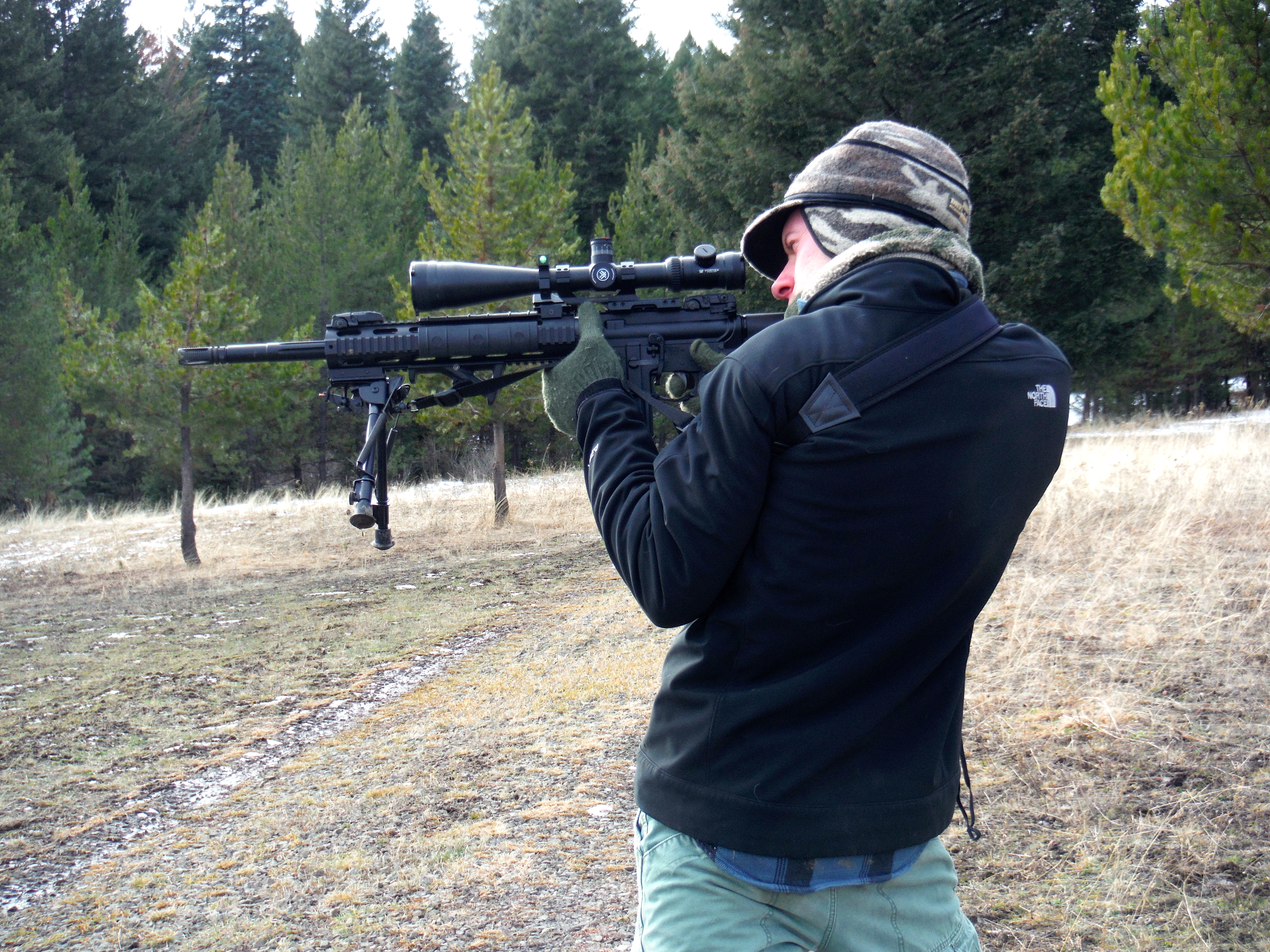 Yesterday I was able to go out and do some shooting with my DPMS Mini-SASS. My scope, a Vortex Viper PST 6-24x50mm FFP with the new EBR-2c MOA reticle, is very high tech and I wanted to spend some more time just practicing calculating yardage and turret adjustments accurately. My scope allows you to adjust the turrets and hold right on but also has the minutes of angle on the reticle itself so you can make faster elevation and windage adjustments if necessary. I have the drop chart for my specific load taped too the side of my stock but just needed to practice making the adjustments and shooting to see if I had calculated it correctly. It felt good to consistently hear that gong ting out there at 505 yards. Even in windy weather you can make an adjustment and consistently hit at that range with the 223. On a calm day an 800 yard shot is not unlikely with this amazing scope and set up. Tristan would give me a scenario, for example, I had shot at an antelope at 510 yards and then he ran into 406 yards. How many minutes of angle would I either hold to on my reticle or adjust my turret too on my scope in order for it to be on? Then I would take the shot to see if I was right.