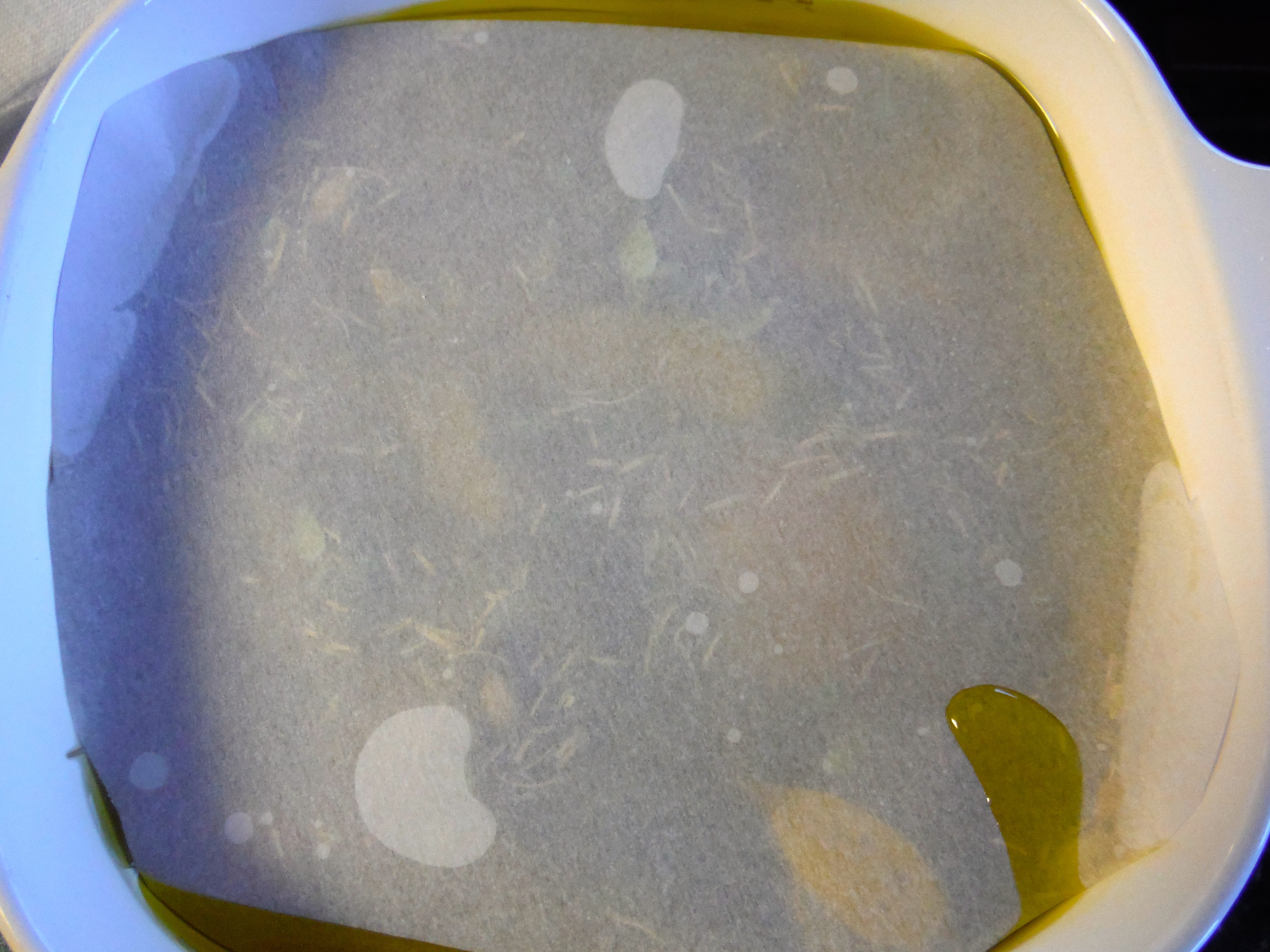 Cut a piece of parchment paper to fit your pot and set it on the surface of the oil.